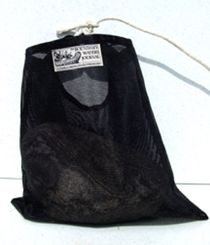 Very heavy duty mesh anchor bag. This material is really tough - it won't shred when your anchor rock smashes into lake bottom boulders. Two sturdy nylon loops to secure anchor rope and keep rock from falling out. Specs: 16" x 16"